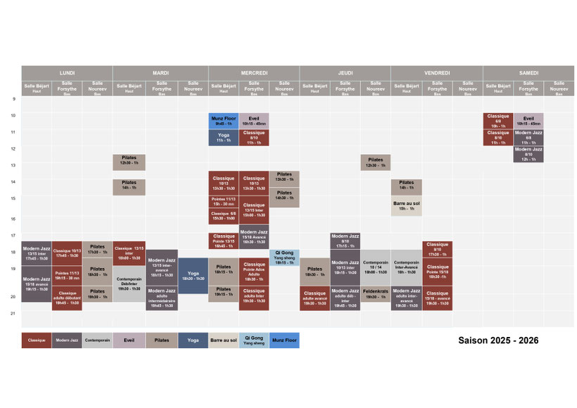 Voici le planning de la saison prochaine avec de nouveaux cours :